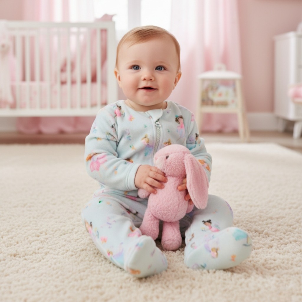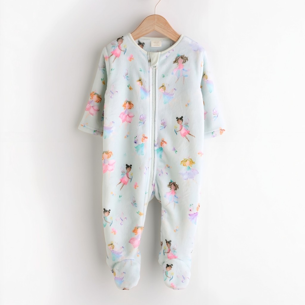 سرهمی دخترانه برند Next اورجینال با رویه مخمل و داخل خز نرم، جورابدار و دارای کف استپدار برای جلوگیری از لیز خوردن نوزاد.